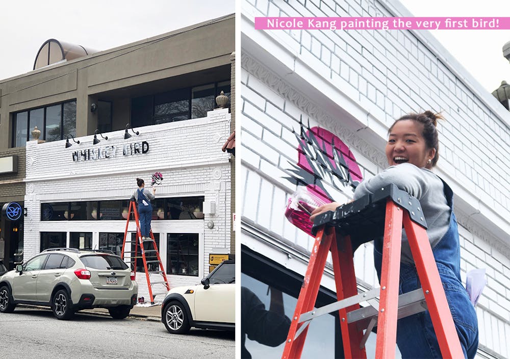 We're SO excited to share our latest passion project, Bird Bricks. We've been dreaming of this day for so long - the day when we could finally get some local artists to leave a lasting impression on our space. Bird Bricks will be a collective group of micro-murals on the facade of our restaurant that will highlight Atlanta's creative talent and bring more color and creativity to the historic neighborhood of Morningside. Each participating artist will paint a bird inspired our logo and the end result will look like a flock of birds, diverse yet all moving towards the sky.